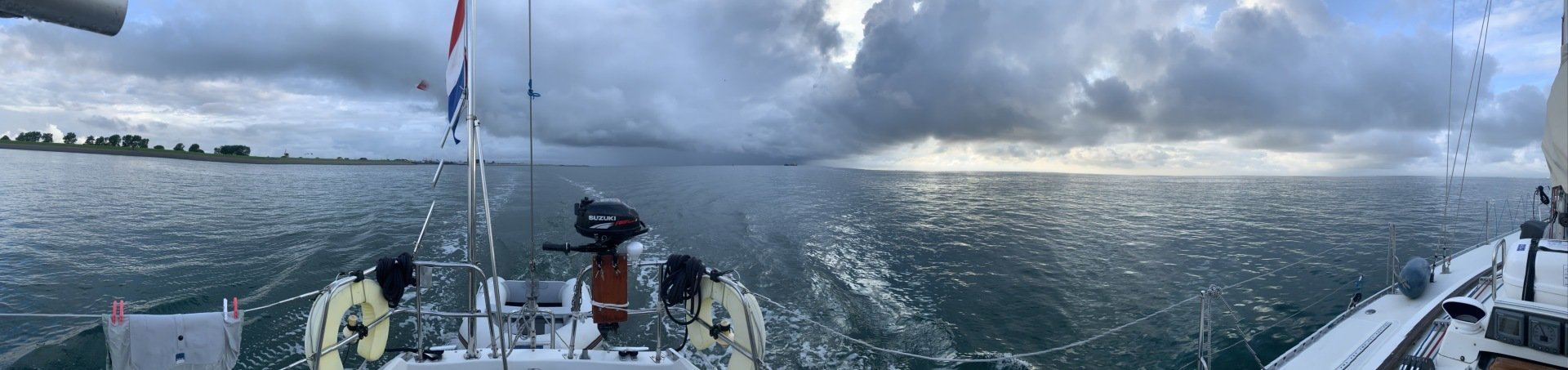 Voor de buien en wind uit geeft de mooiste beelden, wel fijn dat we niet werden ingehaald!